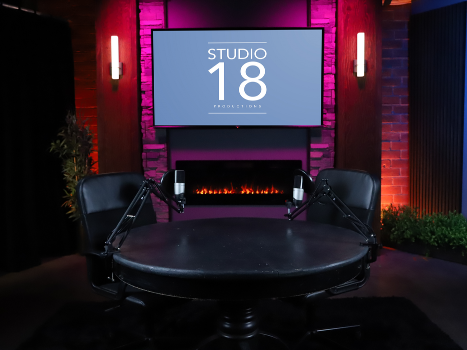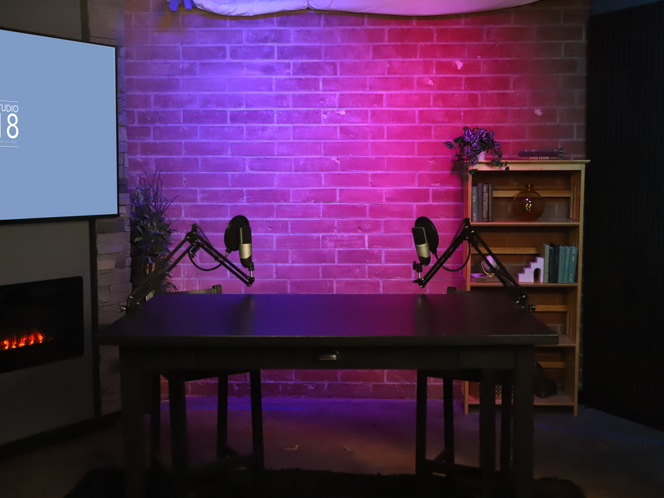 The red brick wall set provides a bold, industrial-chic backdrop that adds depth and texture to any recording. Its timeless aesthetic creates a versatile space, perfect for both intimate conversations and dynamic podcast productions.